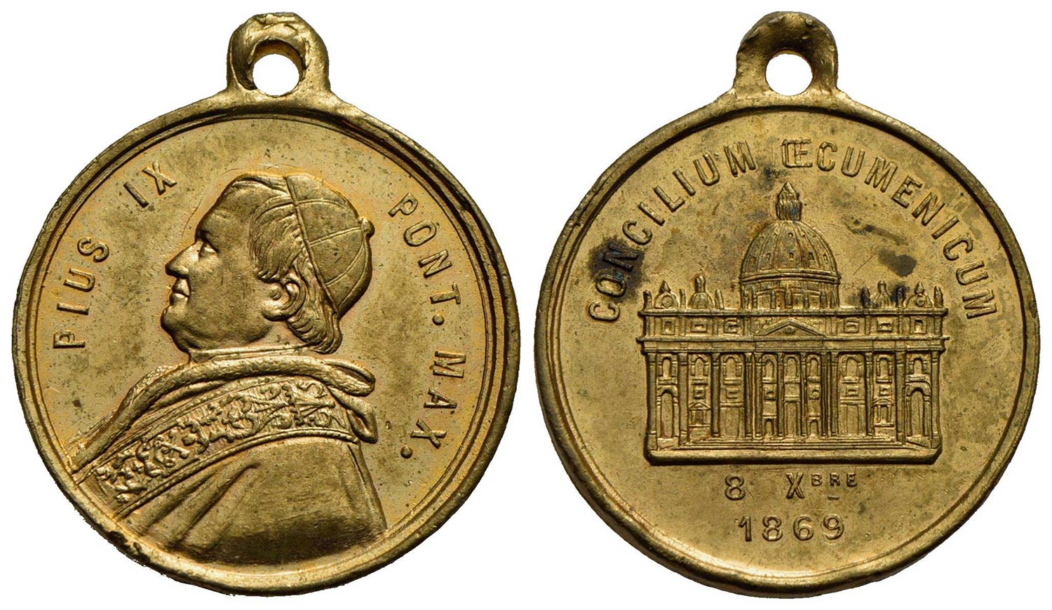 PAPALI - Pio IX (1866-1878) - Medaglia - 1869 - Concilio Ecumenico - Busto a s. - R/ Basilica di San Pietro Ø: 24 mm. - AE dorato Con appiccagnolo