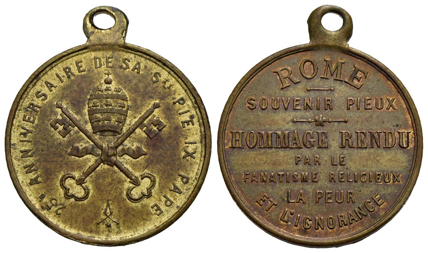 PAPALI - Pio IX (1866-1878) - Medaglia - 25° Anniversario di pontificato - Triregno e chiavi decussa