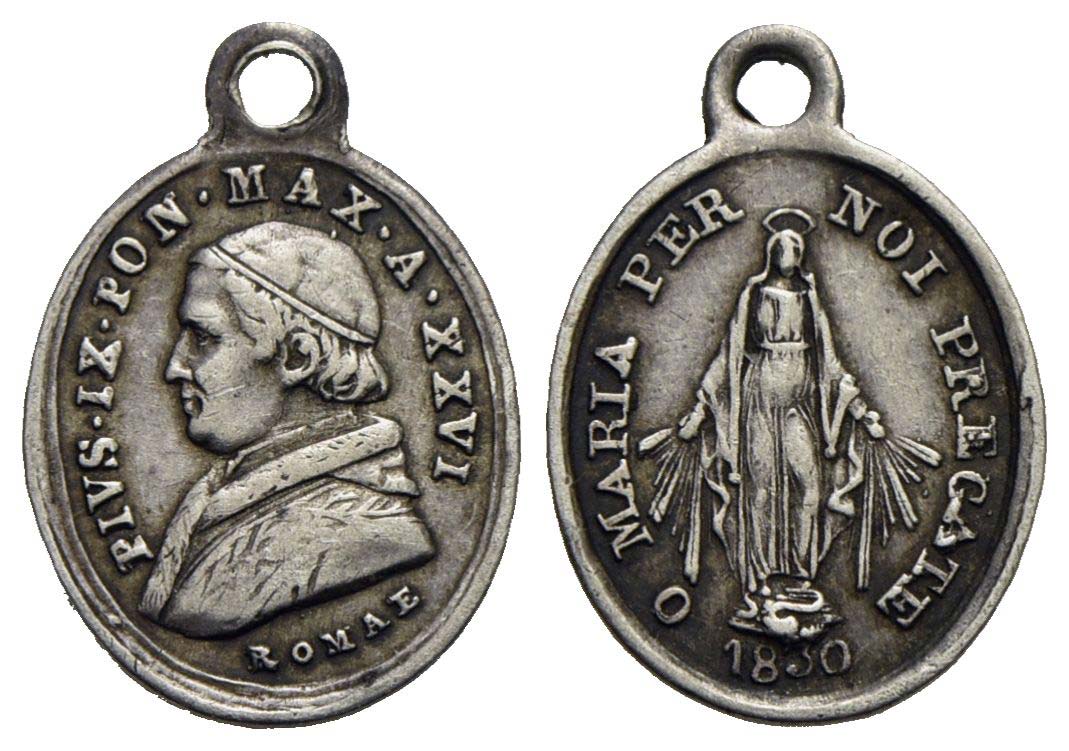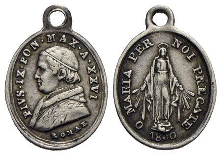 PAPALI - Pio IX (1866-1878) - Medaglia - A. XXVI - Busto a s. - R/ La Vergine Immacolata - (AG g. 0,8) Ovale mm. 15x12