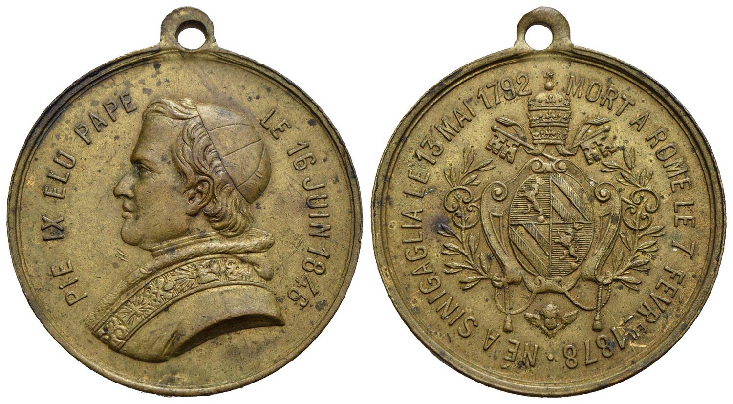 PAPALI - Pio IX (1866-1878) - Medaglia - 1878 - Per la morte - Busto a s. - R/ Stemma papale Ø: 30 mm. - AE Con appiccagnolo