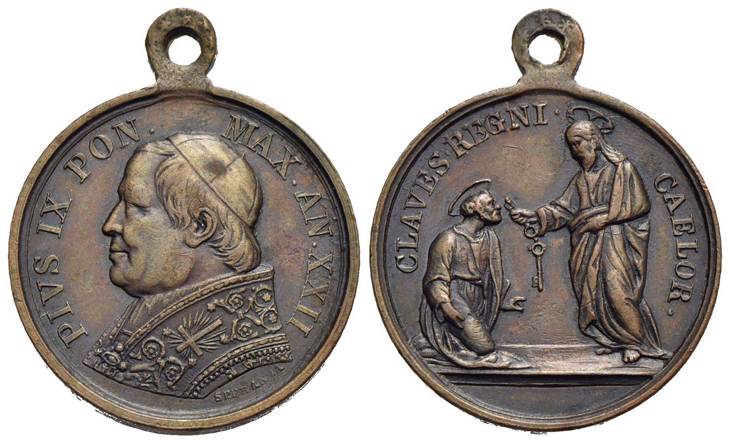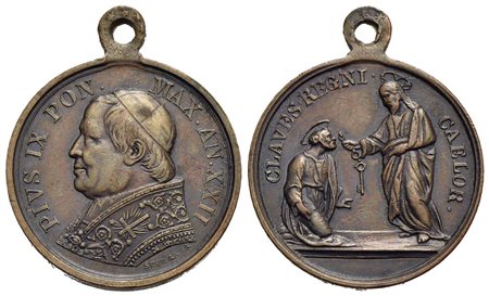 PAPALI - Pio IX (1866-1878) - Medaglia - A. XXII - Chiavi del Regno dei Cieli - Busto a s. - R/ Gesù consegna le chiavi a Pietro Ø: 25 mm. - AE Con appiccagnolo