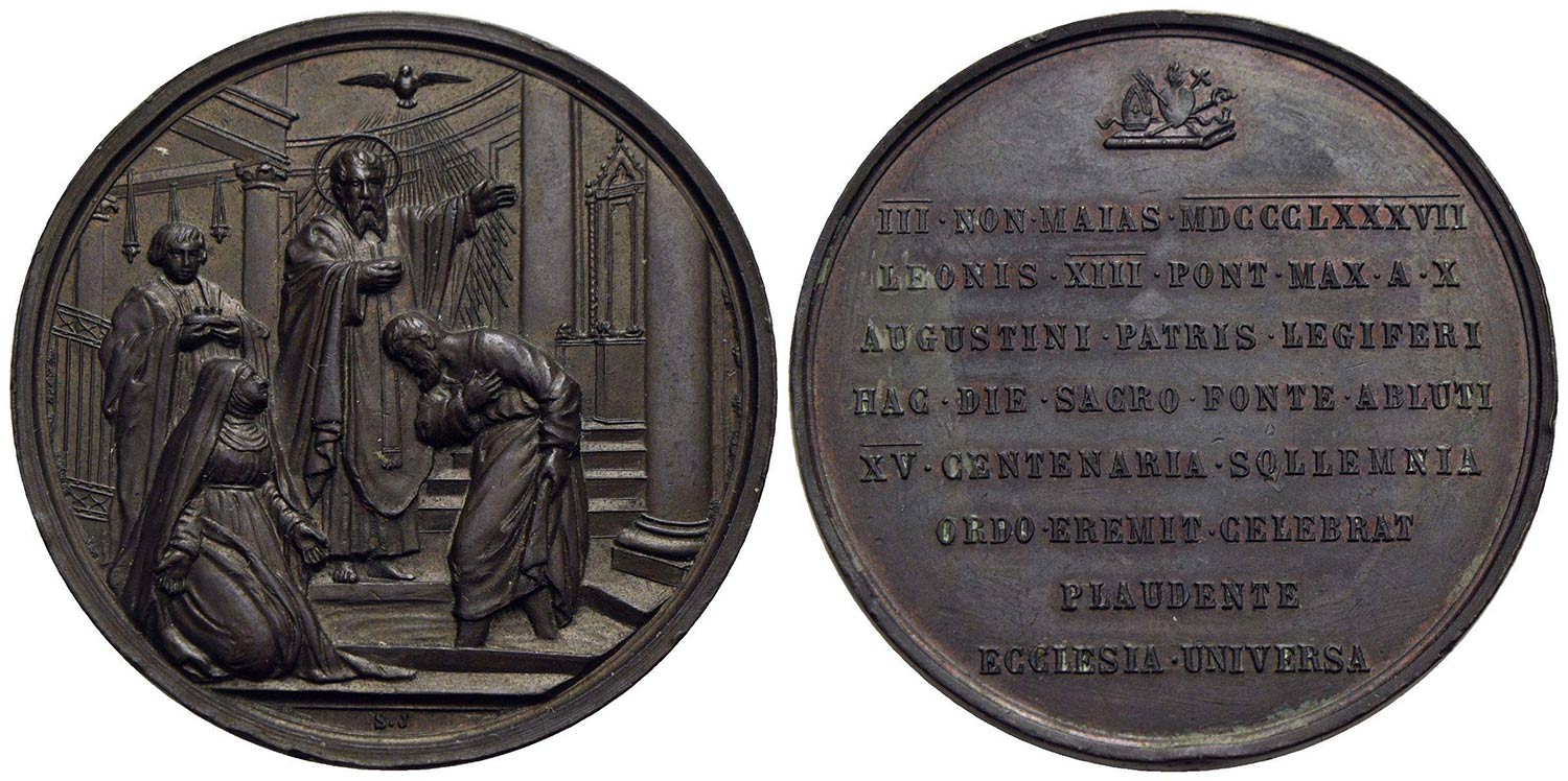 PAPALI - Leone XIII (1878-1903) - Medaglia - 1887 - 1500° Padri Agostiniani - Sant'Ambrogio battezza