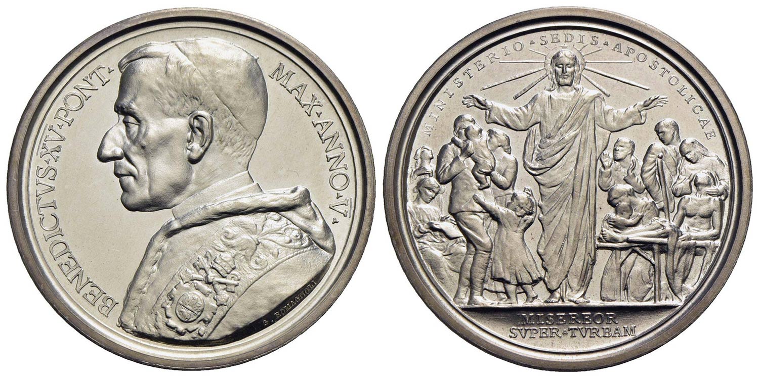 PAPALI - Benedetto XV (1914-1922) - Medaglia - A. V - (AG g. 35,6) R Mont. 12 Eccezionale