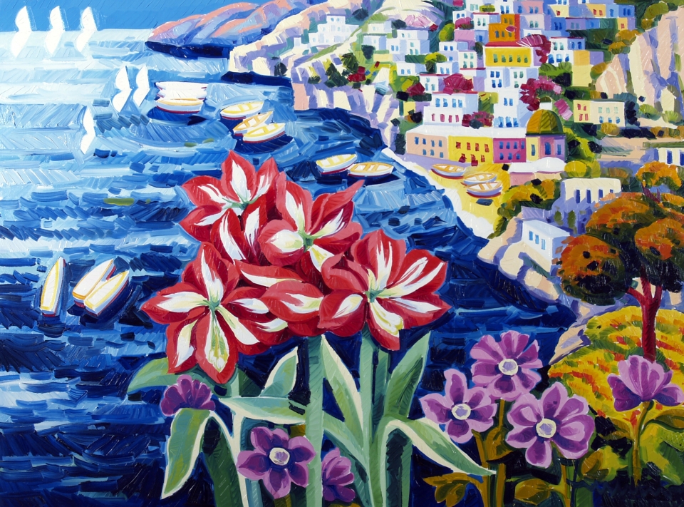 "Accattivante scorcio di Positano" 2012 Olio su tela cm. H: 60.00 L: 80.00 Firma in basso a destra ed al retro. Titolo a tergo dell'opera. Autentica dell'autore su foto.