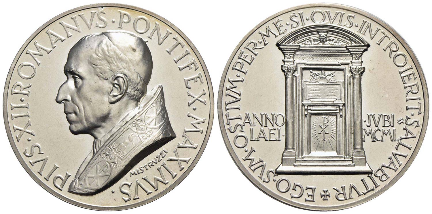 PAPALI - Pio XII (1939-1958) - Medaglia - 1950 - Giubileo - Busto a s. - R/ La Porta Santa Opus: Mistruzzi Ø: 44 mm. - (AG g. 38) Bart. 750