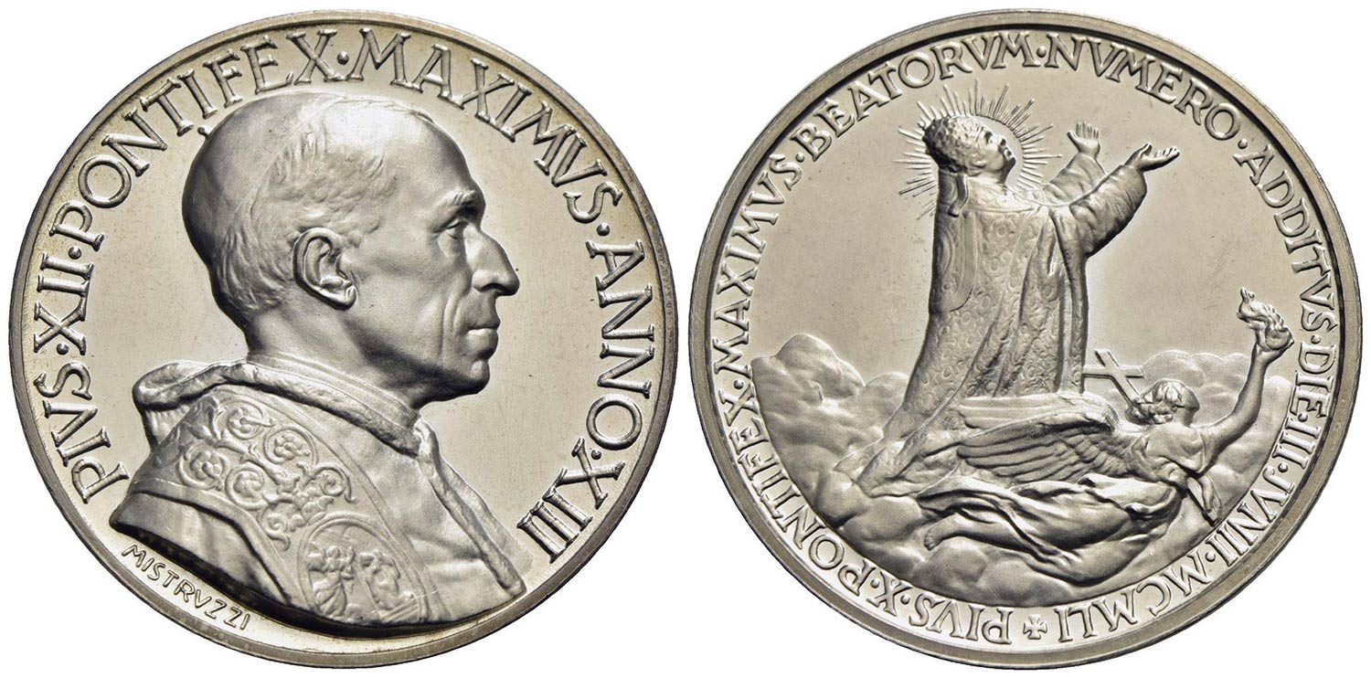 PAPALI - Pio XII (1939-1958) - Medaglia - A. XIII - (AG g. 37,6) R Mont. 33<br>FDC