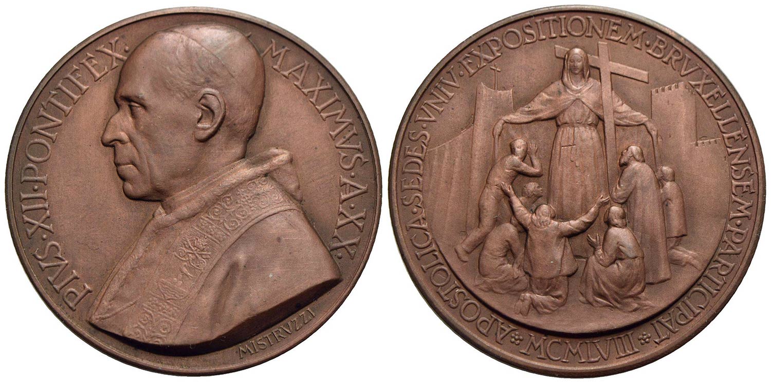 Lotto 2247 | PAPALI - Pio XII (1939-1958) - Medaglia - 1958 A. XX - Esposizione di Bruxelles Opus: Mistruzzi Ø: 4