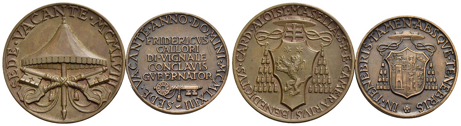 PAPALI - Sede Vacante (1958) - Medaglia - 1958 Ø: 38 mm. - AE Mont. 10 assieme ad altra del Cardinal Callori di Vignale, diam. 31 - Lotto di due medaglie
