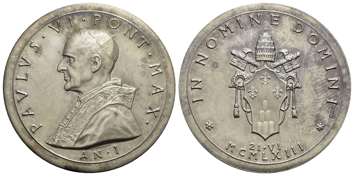 PAPALI - Paolo VI (1963-1978) - Medaglia - 1963 A. I - Elezione al Pontificato - Busto a s. con berr