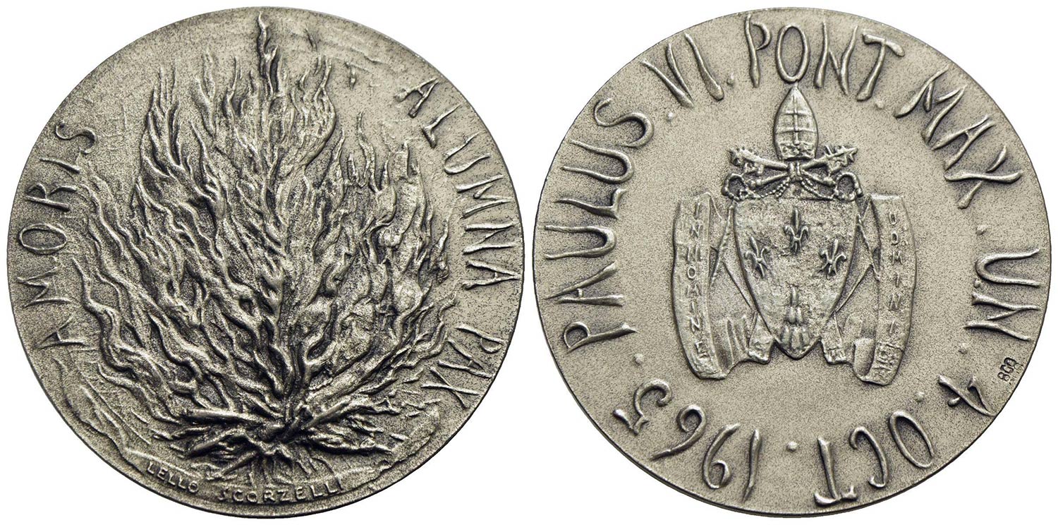 PAPALI - Paolo VI (1963-1978) - Medaglia - 1965 - Visita all'O.N.U. - Rogo ardente - R/ Stemma ed ep
