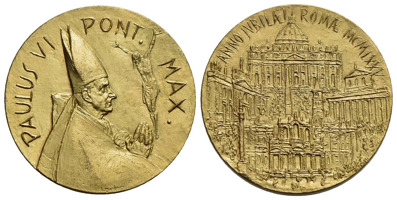 PAPALI - Paolo VI (1963-1978) - Medaglia - 1975 - Anno Santo Opus: Manfrini Ø: 35 mm. - AE dorato<br