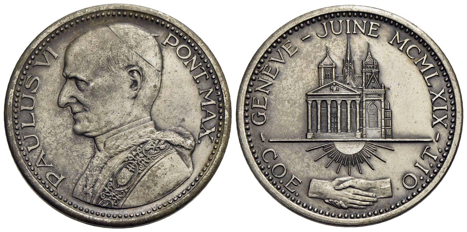 PAPALI - Paolo VI (1963-1978) - Medaglia - 1969 - Viaggio a Ginevra Ø: 47 mm. - AE arg.