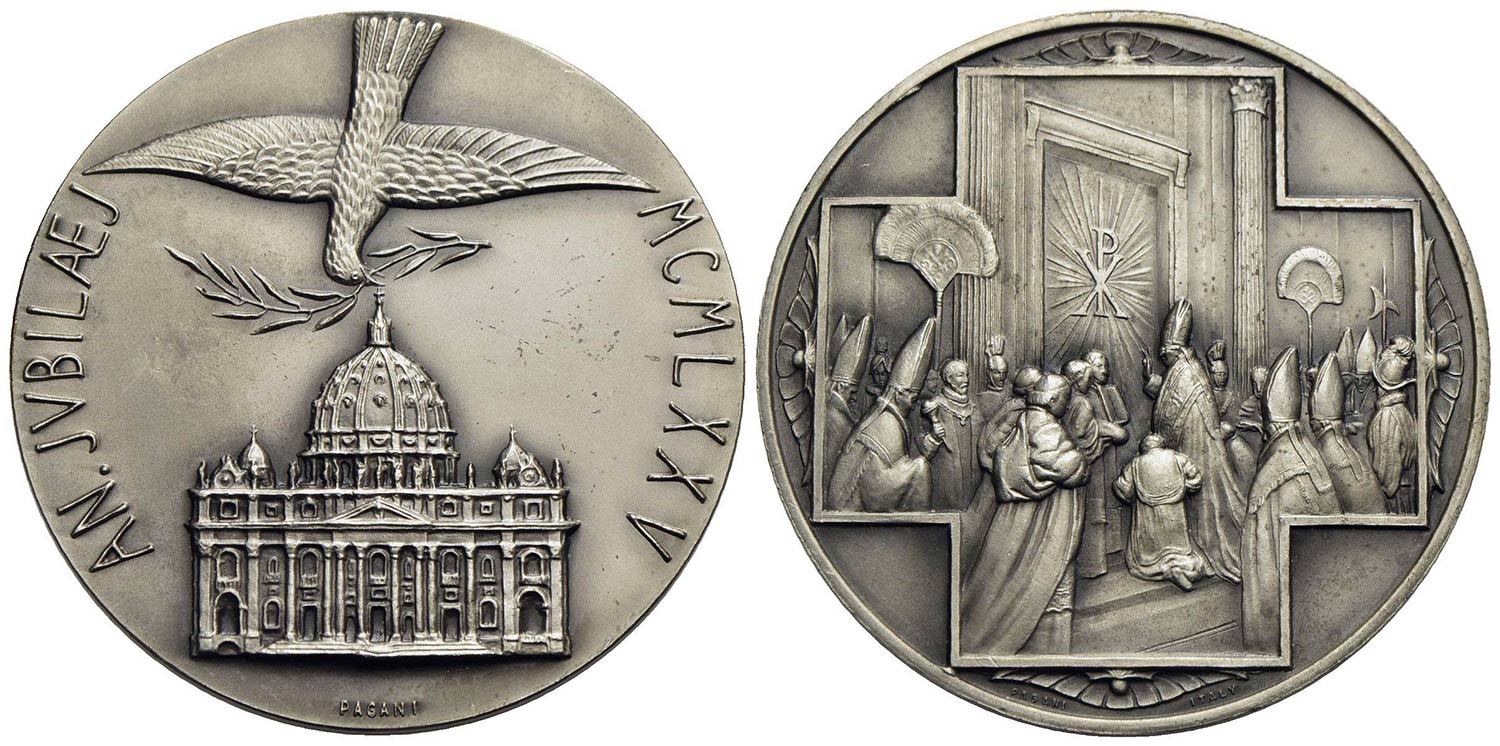 PAPALI - Paolo VI (1963-1978) - Medaglia - 1975 - Anno Santo - Basilica, colomba e Apertura Porta -