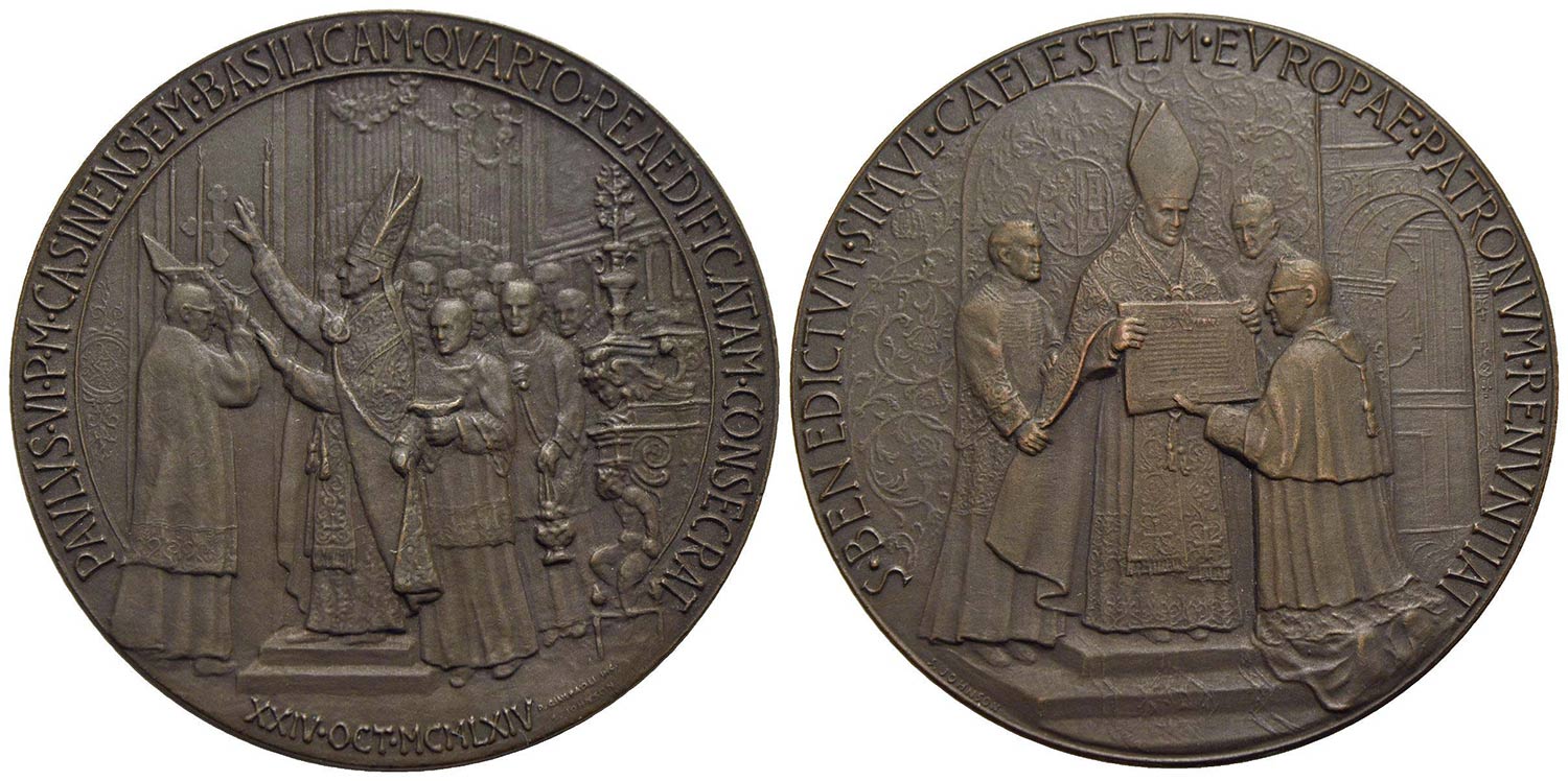 PAPALI - Paolo VI (1963-1978) - Medaglia - 1964 - Riconsacrazione Abbazia Montecassino - Il Papa con