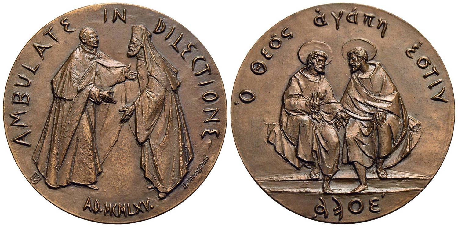 PAPALI - Paolo VI (1963-1978) - Medaglia - 1965 - Ambulate in dilectione - Il Pontefice e il Primate ortodosso - R/ I Santi affrontati Opus: Manfrini Ø: 44 mm. - AE