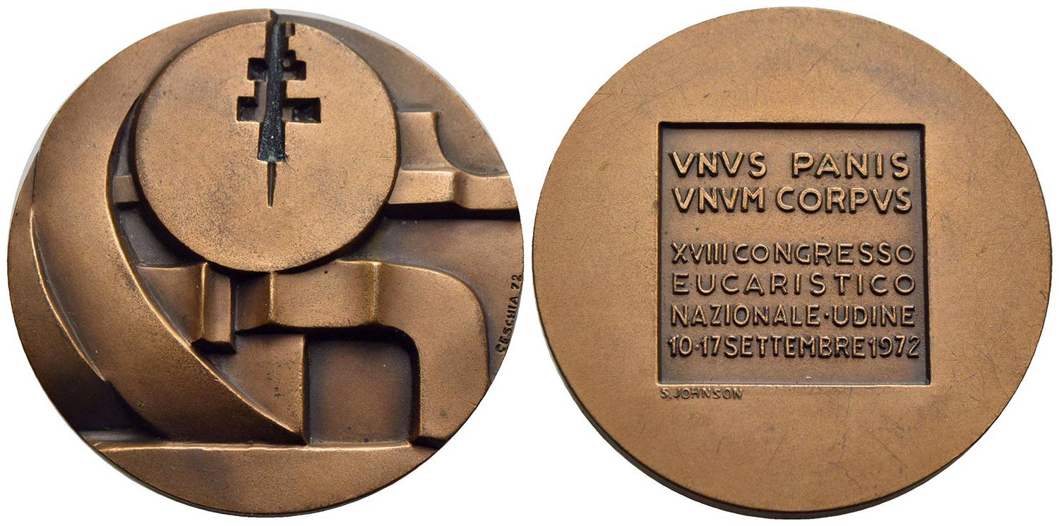 PAPALI - Paolo VI (1963-1978) - Medaglia - 1972 - Congresso Eucaristico Nazionale Udine - Logo del Congresso Eucaristico Nazionale - R/ Scritta Opus: Ceschia Ø: 42 mm. - AE Johnson 639