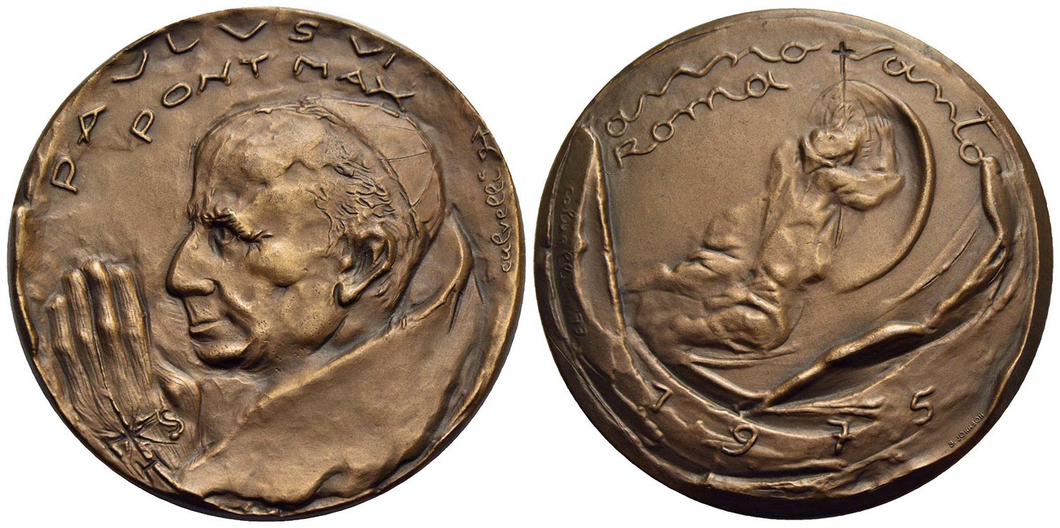PAPALI - Paolo VI (1963-1978) - Medaglia - 1975 - Anno Santo - Busto in preghiera a s. - R/ Uomo ver