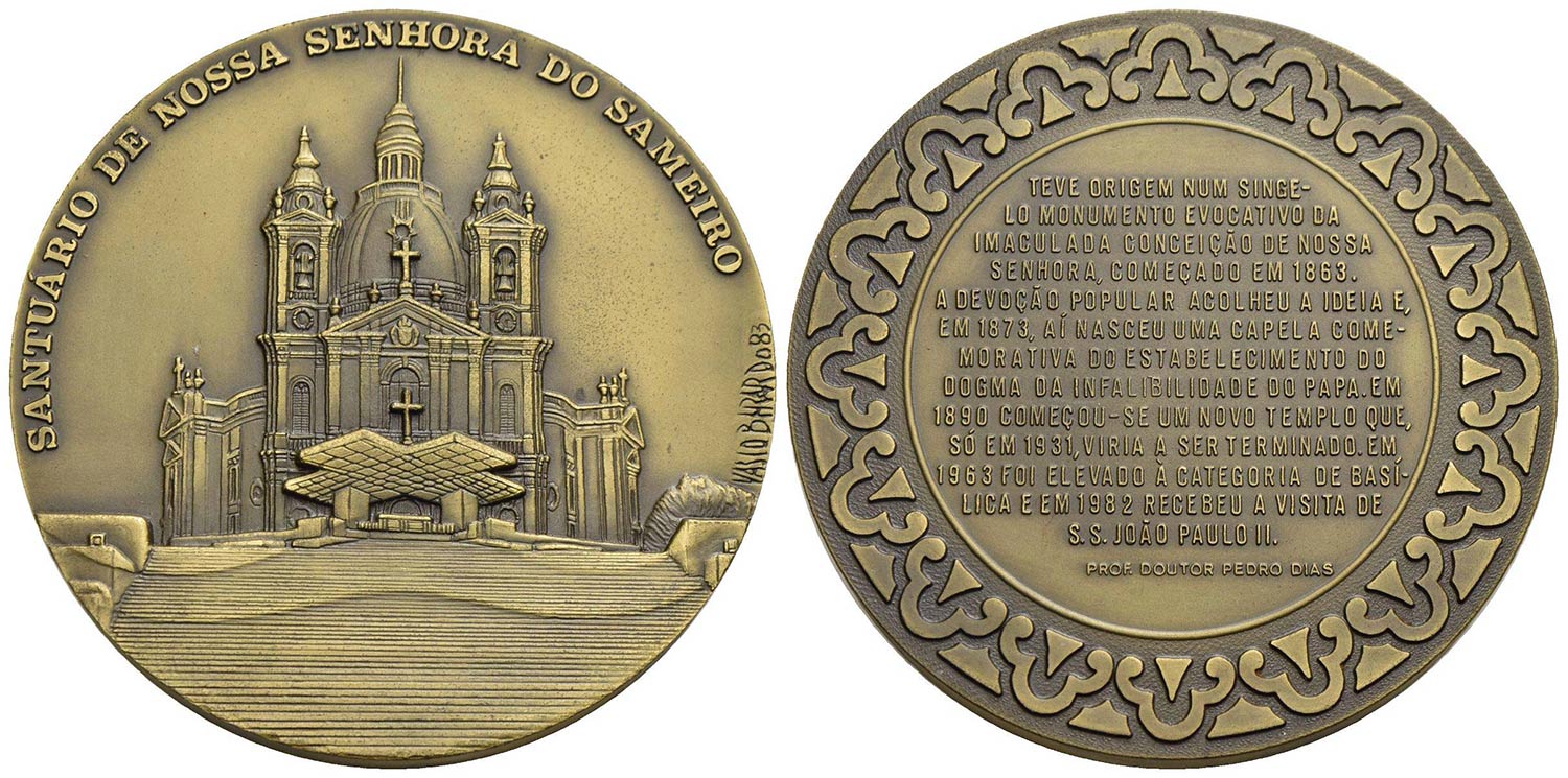 RELIGIOSE - Medaglia - 1982 visita di Giovanni Paolo II al Santuario di Nostra Signora di Sameiro (Portogallo) - Il santuario - R/ Scritta Opus: Vasco Barardo Ø: 90 mm. - AE