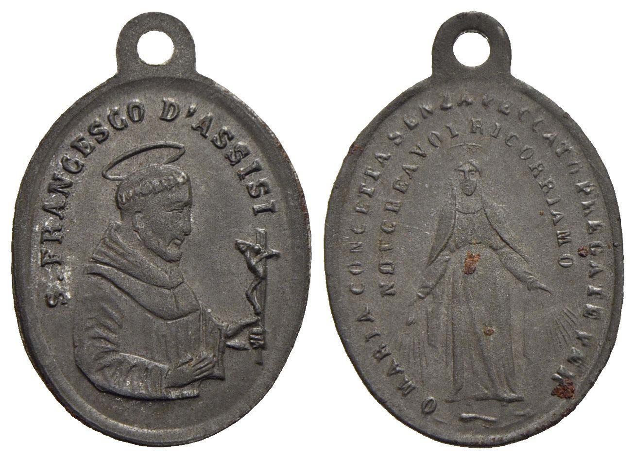 RELIGIOSE - Medaglia - San Francesco - Busto a d. - R/ Immacolata - AE Ovale mm. 19x15 Con appiccagnolo