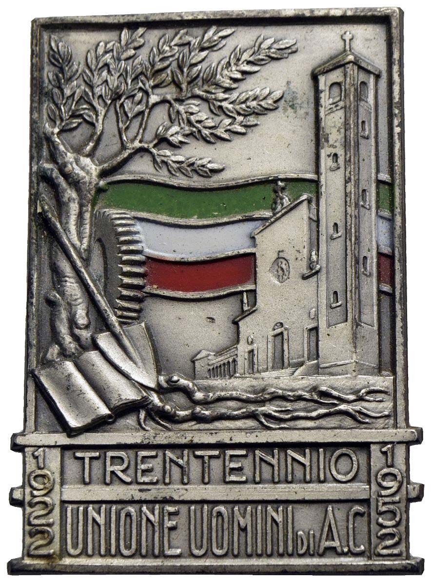RELIGIOSE - Placchetta - 1922-1952 Trentennio unione uomini A.C. - Chiesa di San Leone Magno, tricol