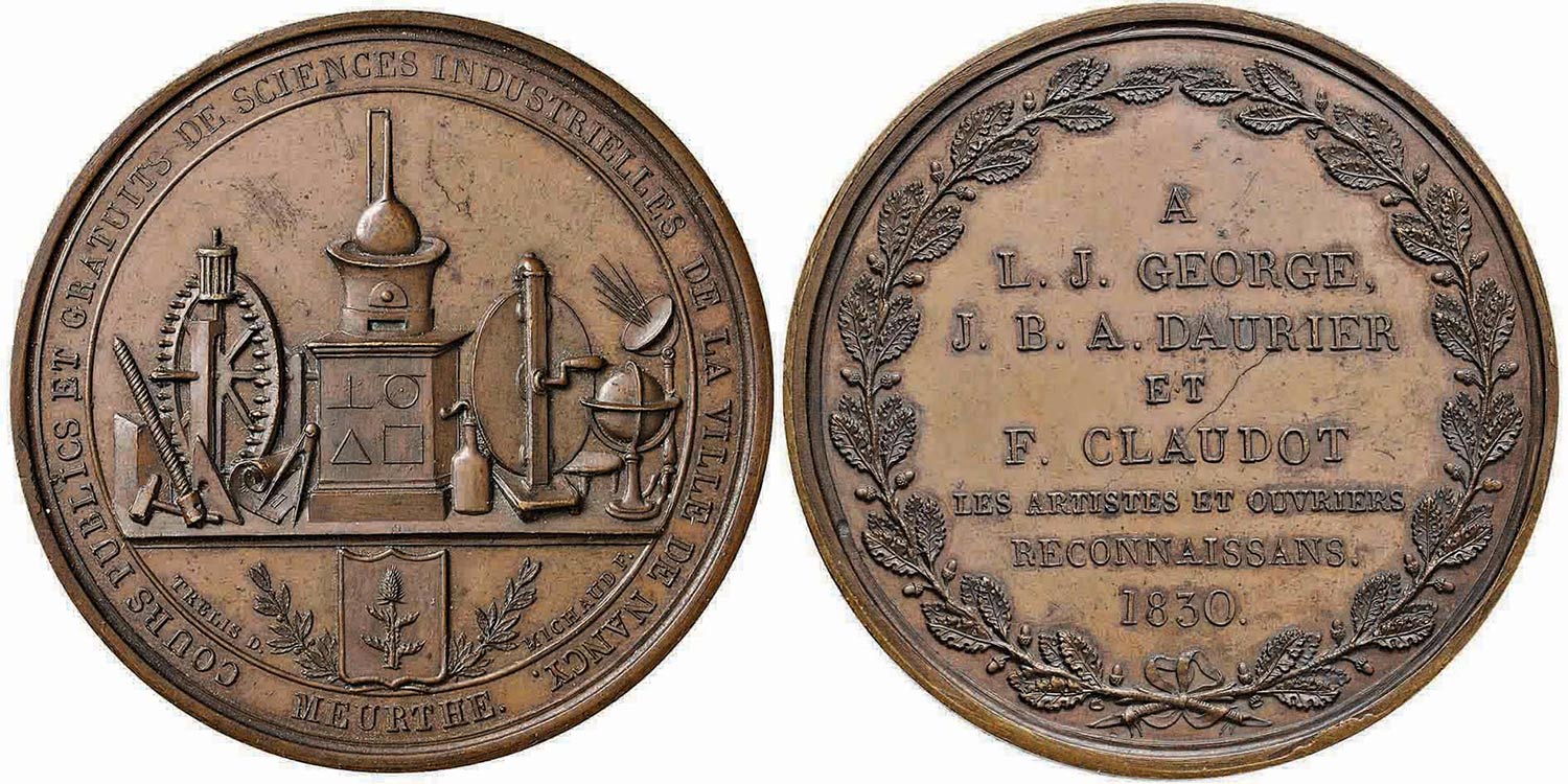 CITTA' - Nancy - Medaglia - 1830 - Corsi di scienze industriali - Allegoria - R/ Scritta Opus: Micha