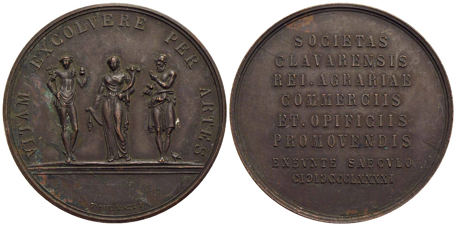 CITTA' - Chiavari - Medaglia - 1891 - Società agraria e dei commerci - Figure allegoriche di Mercuri