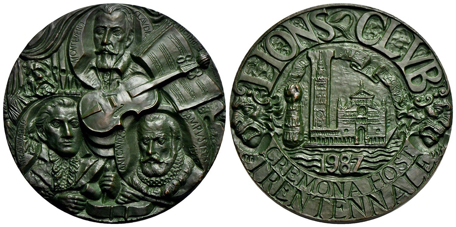 CITTA' - Cremona - Medaglia - 1987 - Lions Club - Trentennale - Personaggi famosi di Cremona e violi