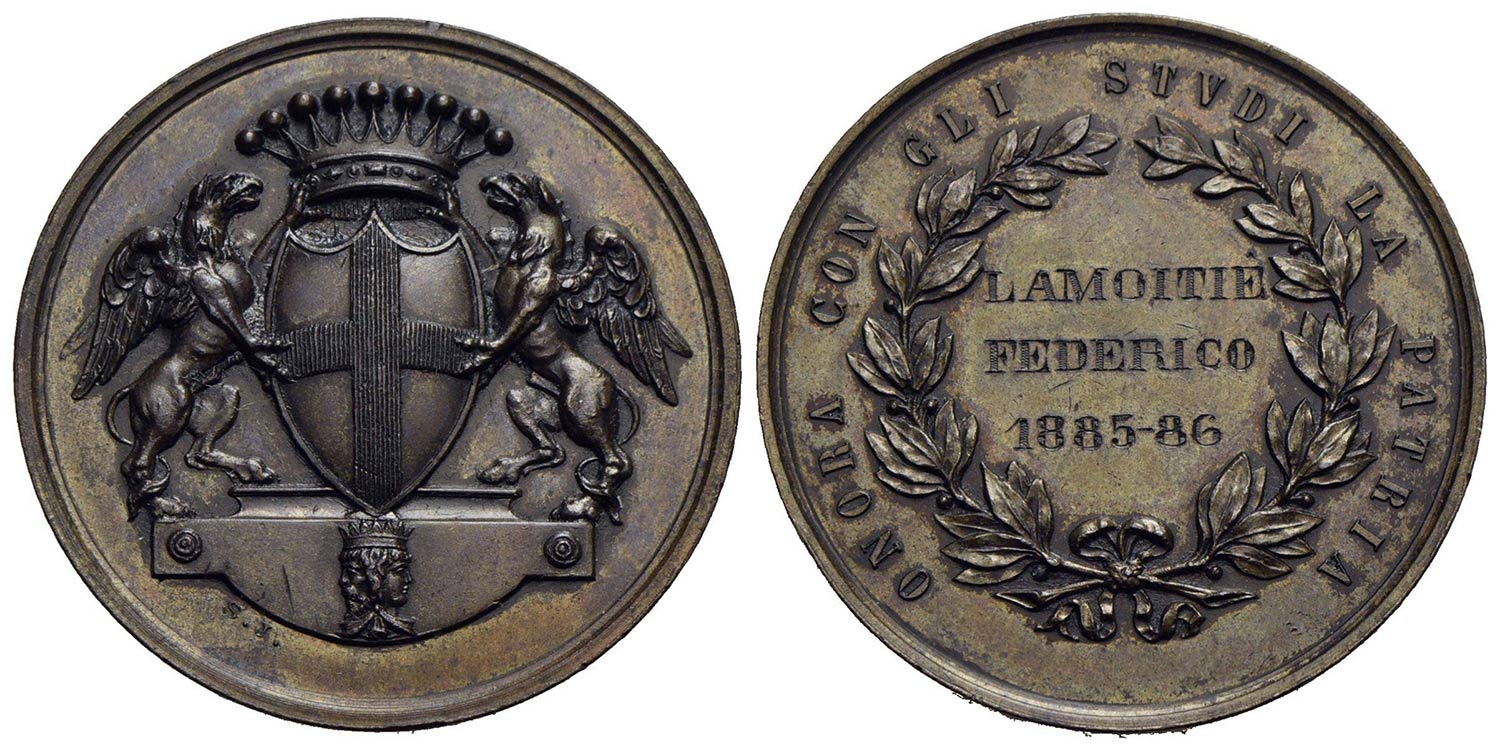 CITTA' - Genova - Medaglia - 1887 - Onora con gli studi la patria - Stemma - R/ Scritta Opus: Johnson Ø: 40 mm. - (AE g. 31,7)