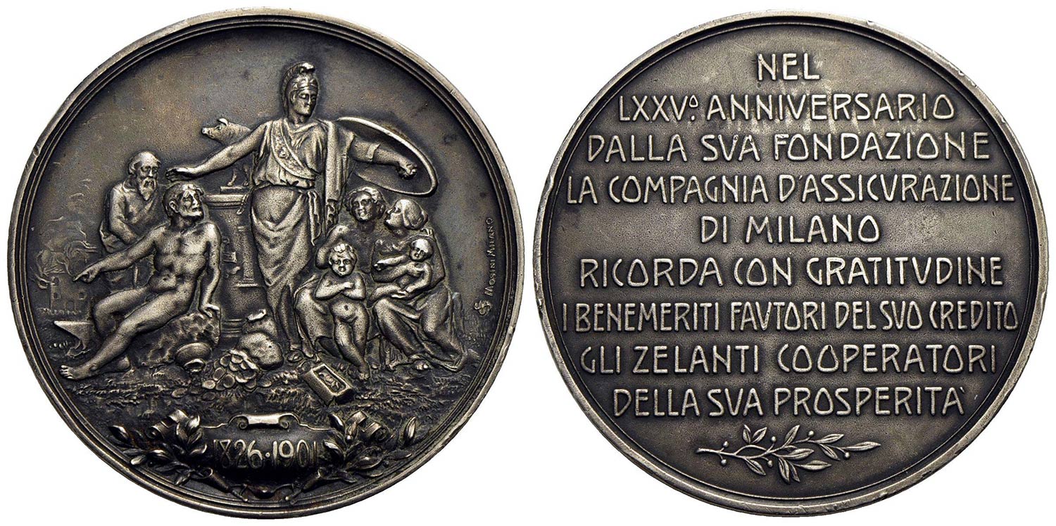 CITTA' - Milano - Placchetta - 1901 - 75° Compagnia di Assicurazioni - Allegoria - R/ Scritta Opus: