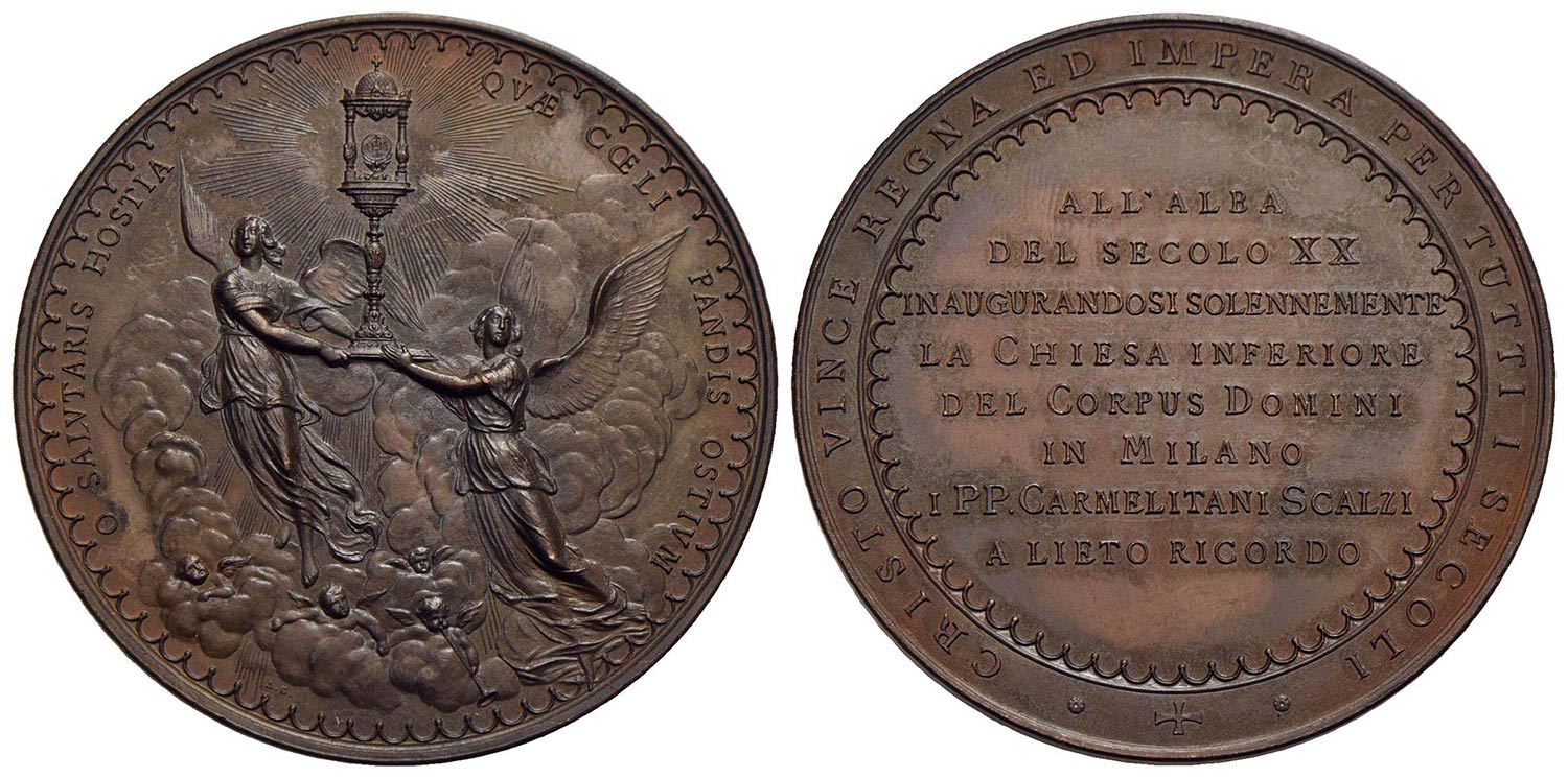 CITTA' - Milano - Medaglia - 1900 - Chiesa Inferiore del Corpus Domini - Due Angeli sorreggono osten