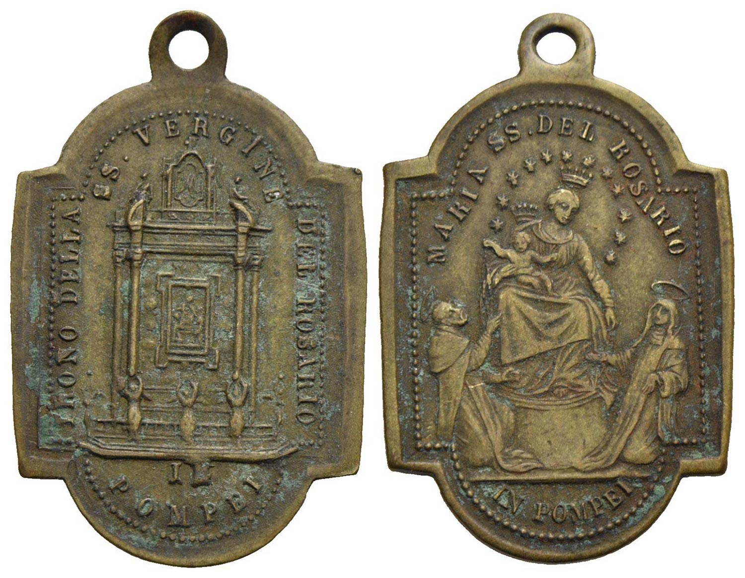 CITTA' - Napoli - Medaglia - Pompei - Santa Maria del Rosario - La Vergine e i Santi - R/ Trono della Vergine - AE Con appiccagnolo, mm. 26x19
