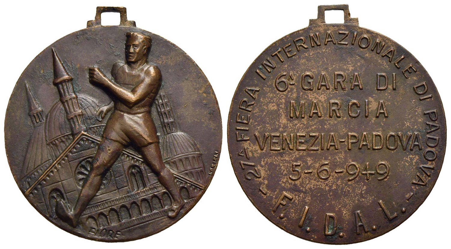 CITTA' - Padova - Medaglia - 1949 - Gara di marcia VE-PD - Podista con la città sullo sfondo - R/ Sc