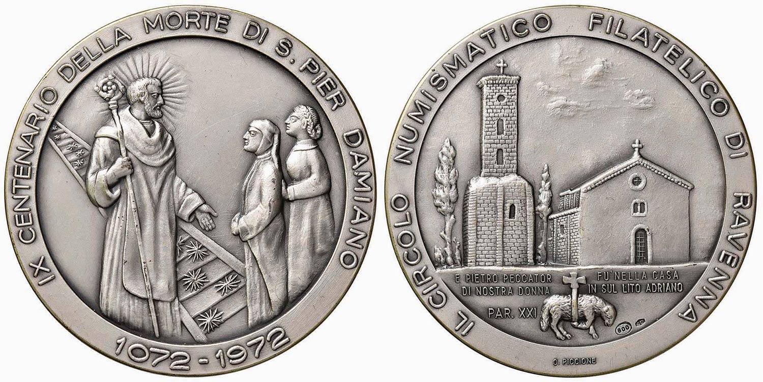 CITTA' - Ravenna - Medaglia - 1972 - 900° morte San Pier Damiano - Chiesa e in esergo agnello - R/ I