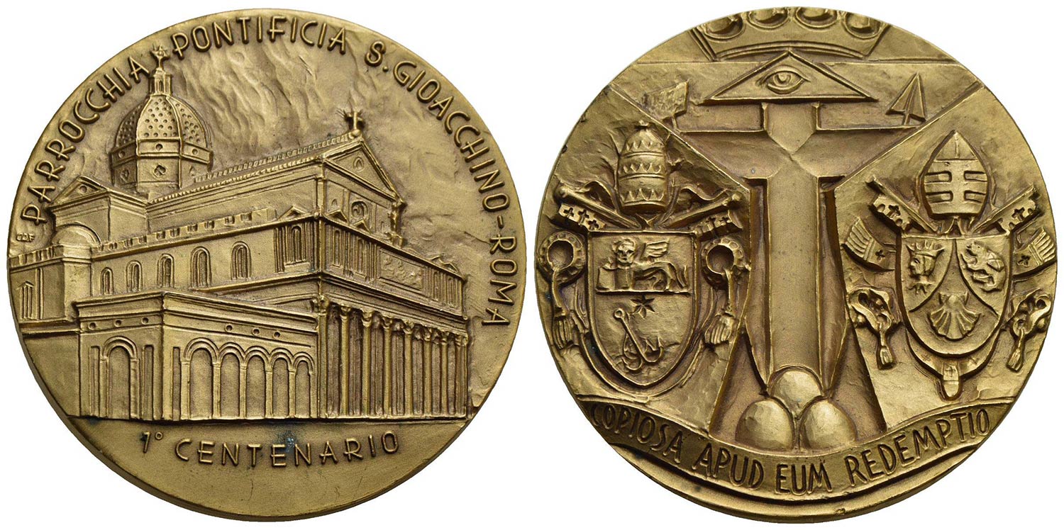 CITTA' - Roma - Medaglia - Parrocchia Pontificia di San Gioacchino - I° Centenario - Chesa di San Gioacchino - R/ Stemmi pontifici Ø: 58 mm. - AE