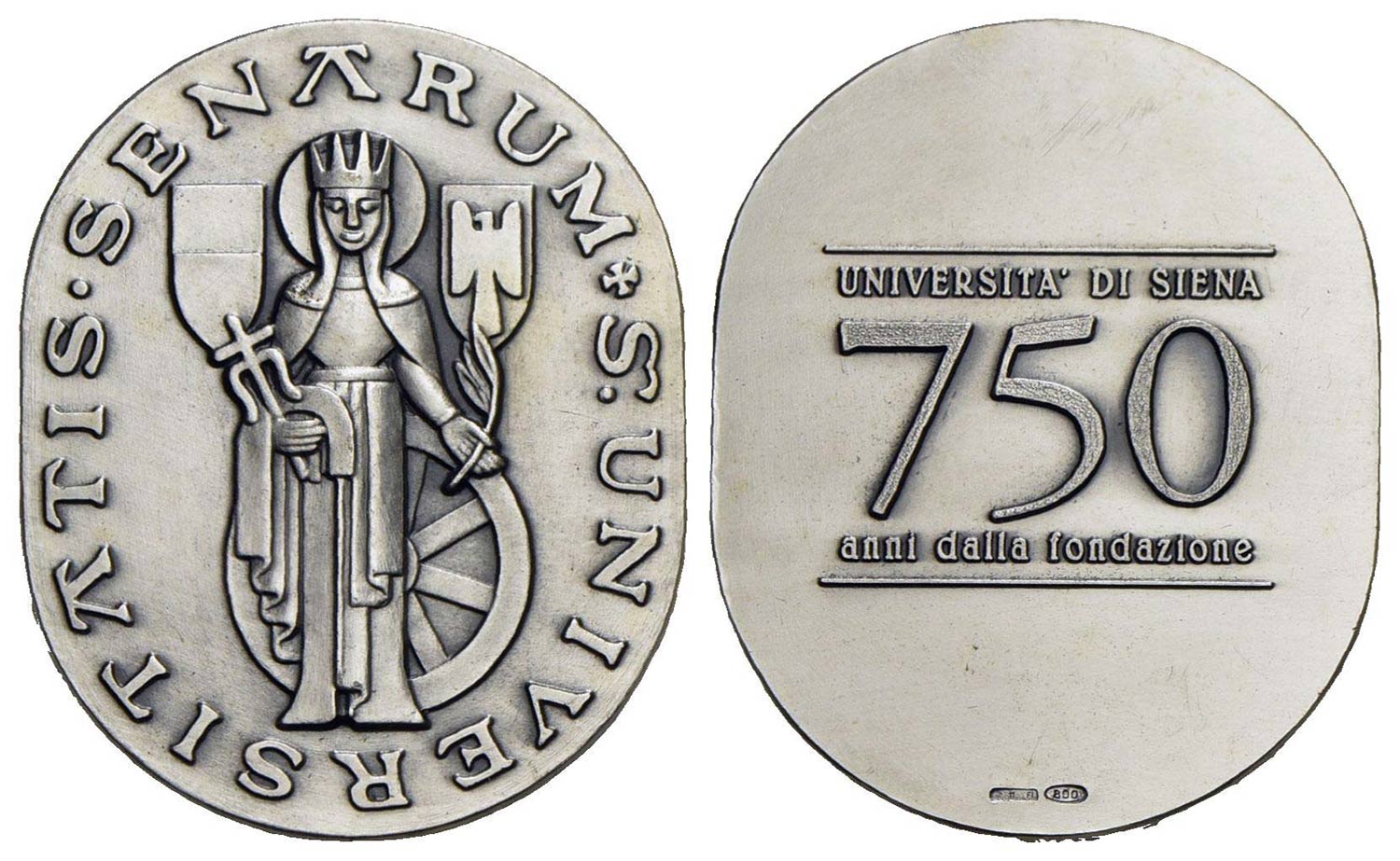 CITTA' - Siena - Medaglia - UNIVERSITA' - 750° anno della fondazione - Simboli della città - R/ Scritta Opus: Picchiani e Barlacchi - (AG g. 41) Ovale 47x38 In scatola originale e certificato