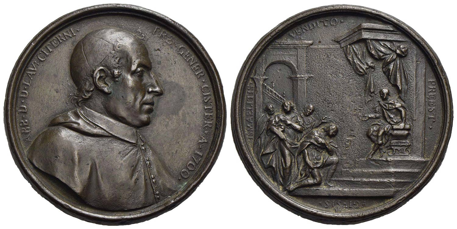 PERSONAGGI - Abbate Lorenzo Tiberni (o Citerni)(monaco cistercense) Sec.XVIII - Medaglia - 1700 - Ismaeliti vendito preest - Busto a d. Ø: 70 mm. - AE Fusione
