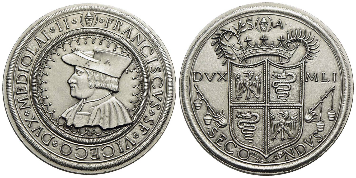 PERSONAGGI - Francesco II d'Este (Reggenza di Laura Martinozzi, 1662-1674) - Medaglia - 1990 - Medaglia commemorativa della Banca Commerciale Italiana - Busto a s. - R/ Stemma del ducato di Milano Ø: 40 mm. - AG Con libretto della BCI