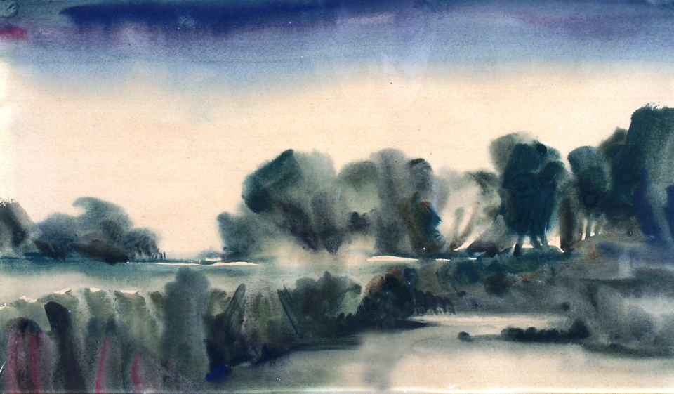 Lotto 39 | CONVERSANO ROMANO "Paesaggio lagunare" 1966 Acquerello su carta cm. H: 27.00...