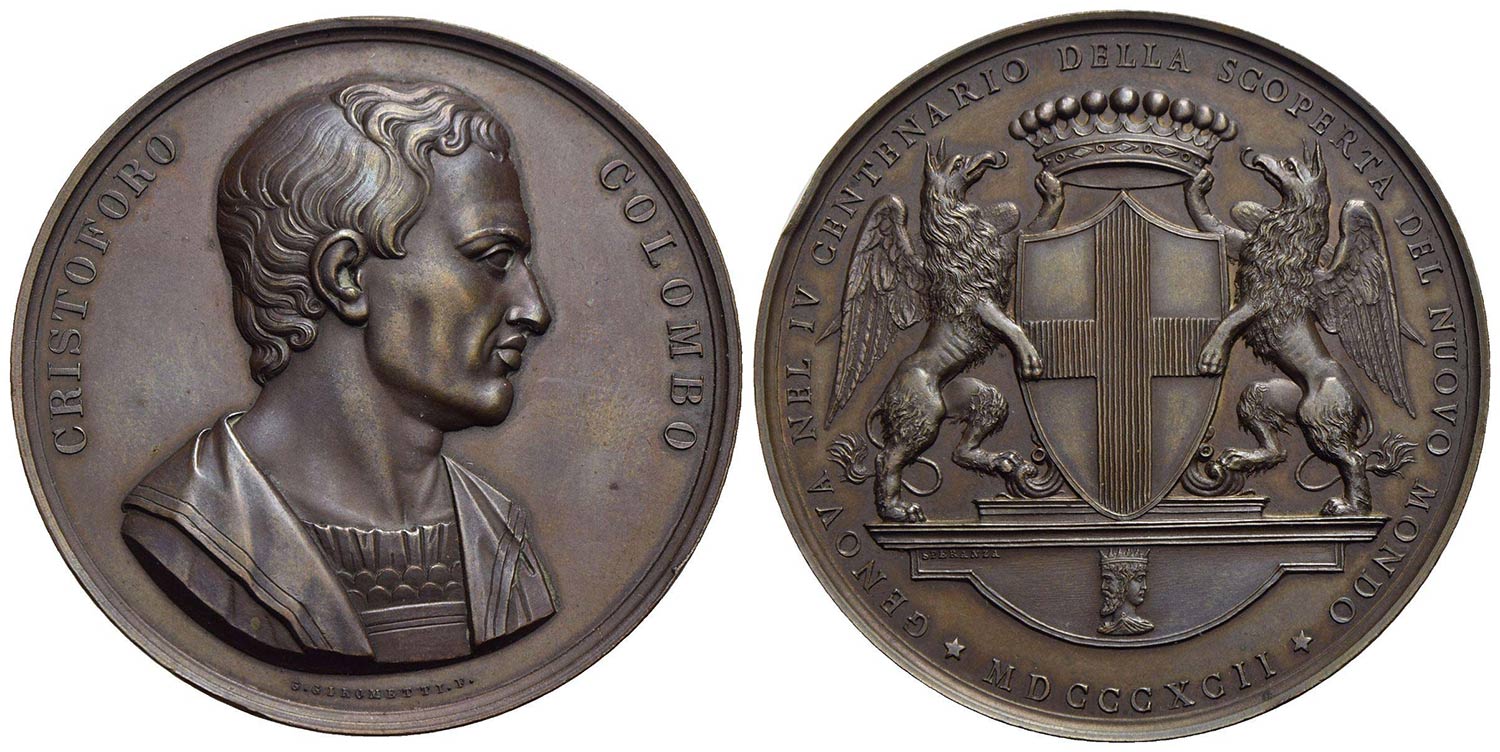 PERSONAGGI - Cristoforo Colombo (esploratore e navigatore) (1451-1506) - Medaglia - 1892 - IV Centen
