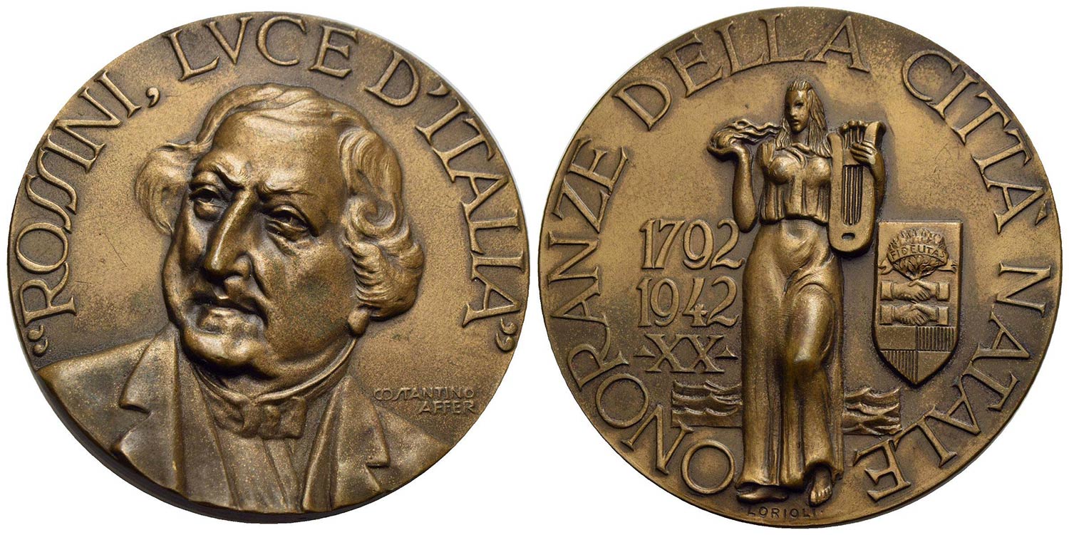 PERSONAGGI - Gioacchino Rossini (musicista) (1792-1868) - Medaglia - 1942 - Omaggio di Pesaro - Bust