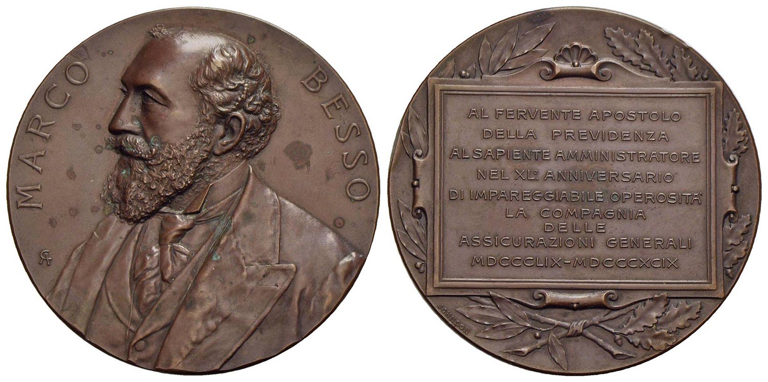 PERSONAGGI - Marco Besso (imprenditore) (1843-1920) - Medaglia - 1859-1899 Le assicurazioni Generali