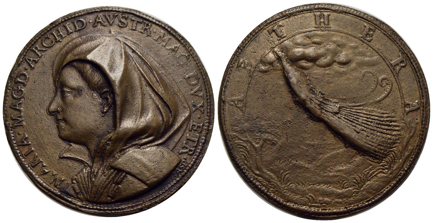 PERSONAGGI - Maria Maddalena D'Austria (1591-1621) - Medaglia - Busto a s. - R/ Pavone in volo a s.