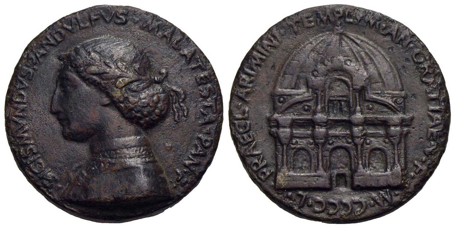 PERSONAGGI - Sigismondo Pandolfo Malatesta (1417-1468) - Medaglia - MCCCCL - Busto laureato a s. - R/ Frontone del tempio di San Francesco Opus: Matteo de' Pasti Ø: 39 mm. - (AE g. 36,8) Hill 183