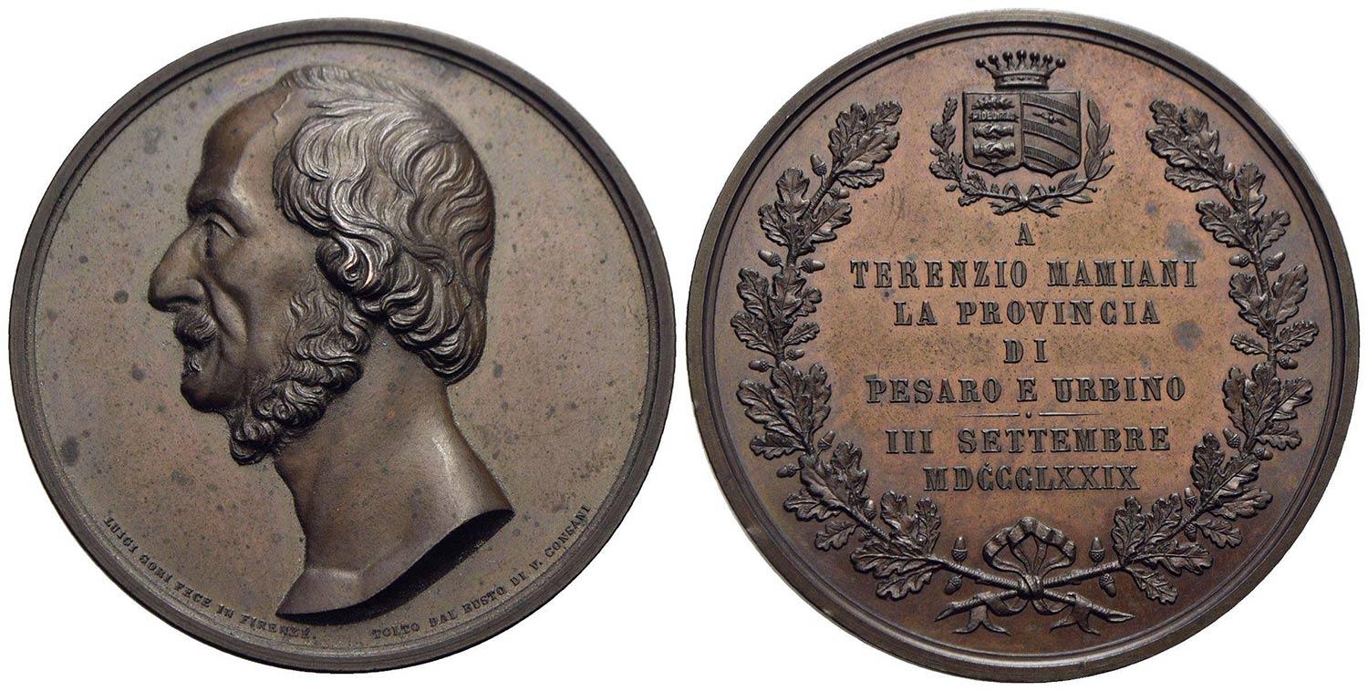 PERSONAGGI - Terenzio Mamiani (Filosofo e politico) (1799-1885) - Medaglia - 1879 - Pesaro - Busto a