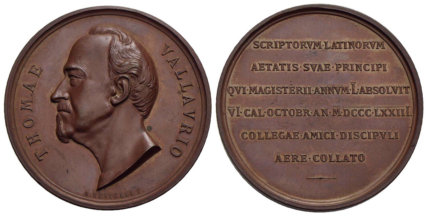 Lotto 2788 | PERSONAGGI - Tommaso Vallauri (politico e filologo) (1805-1897) - Medaglia - 1873 - 50° anniversario