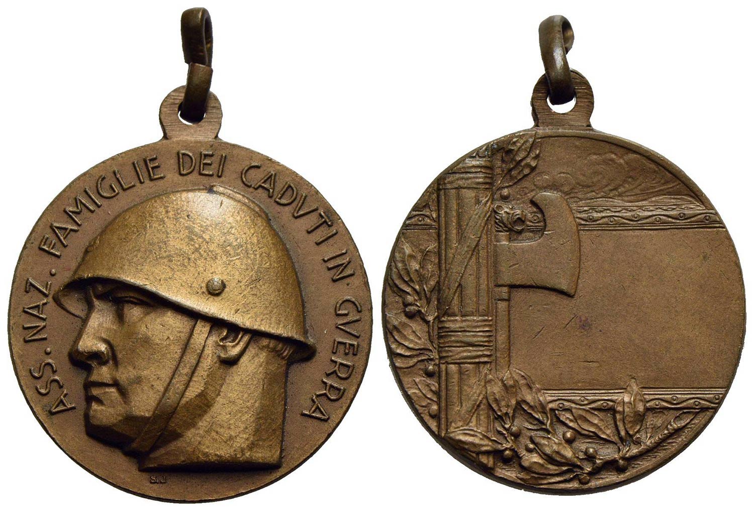 FASCISTE - Medaglia - Ass. Naz. Famiglie Caduti di Guerra - Testa elmata di Mussolini a s. - R/ Cart