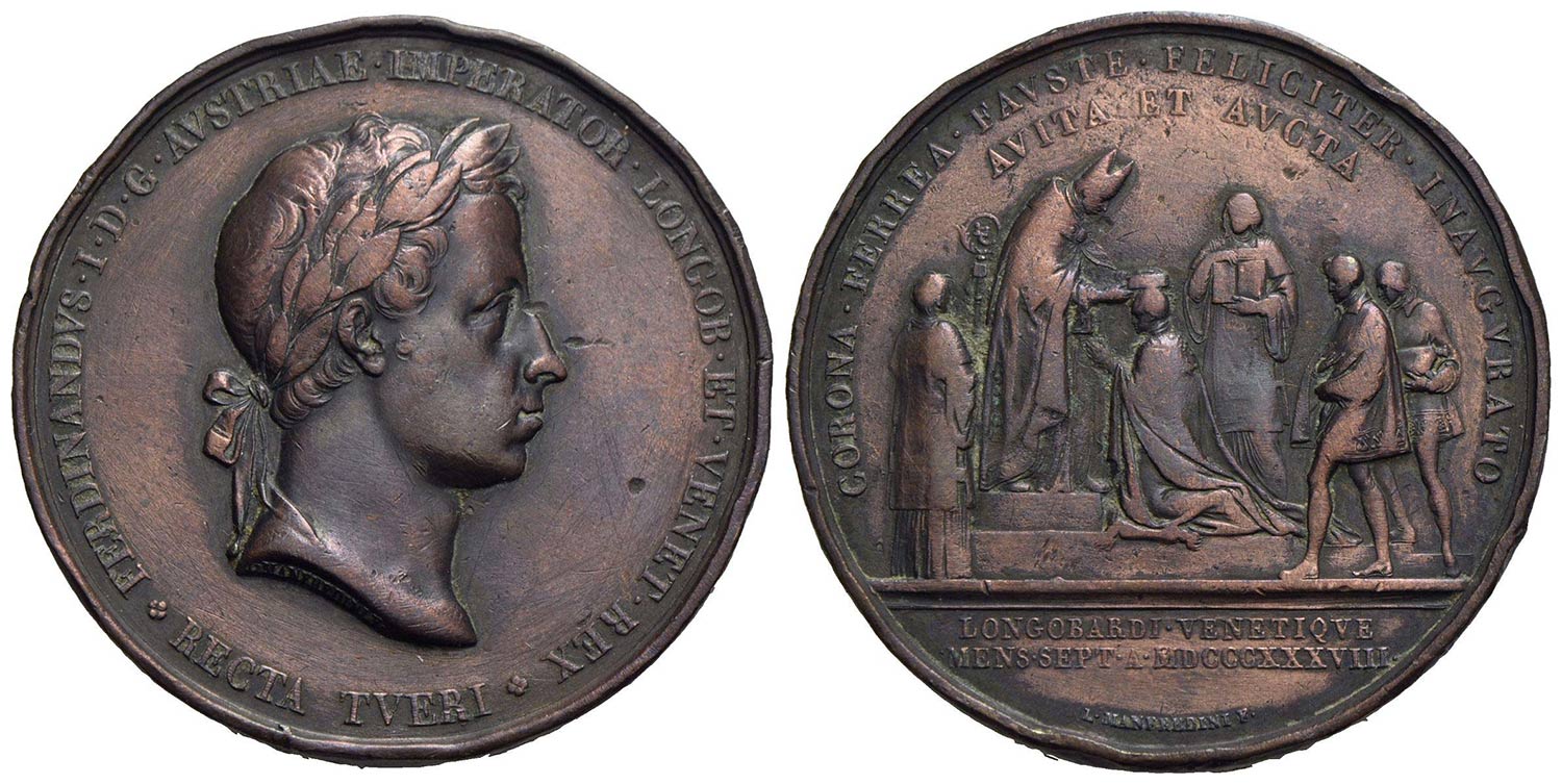 MILANO - Ferdinando I d'Asburgo-Lorena (1835-1848) - Medaglia - 1838 - Incoronazione - Testa laureata a d. - R/ Scena dell'incoronazione Opus: Manfredini Ø: 52 mm. - (AE g. 63,9)
