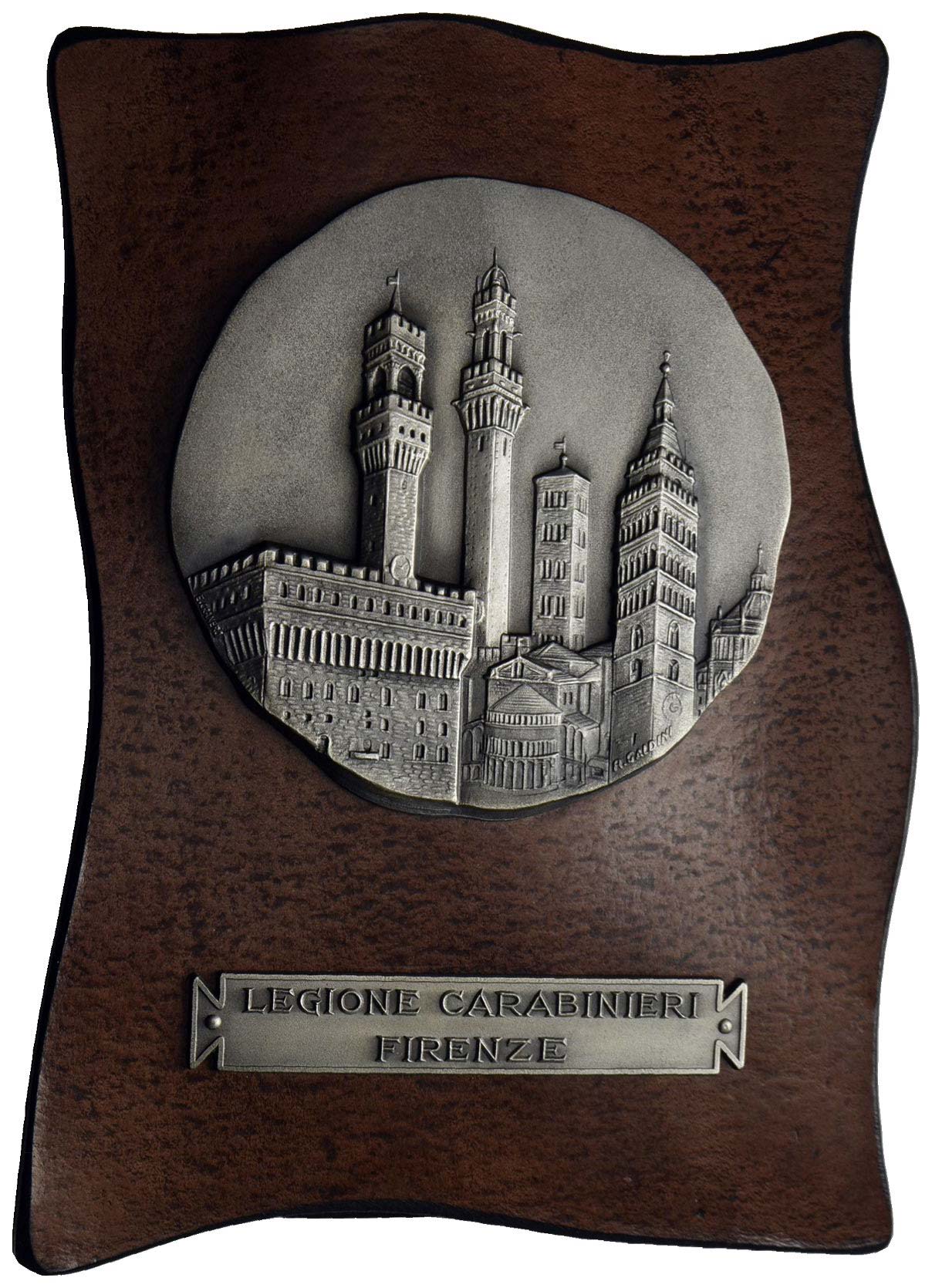 VARIE - Medaglia - CARABINIERI - Legione di Firenze - Torri e campanili di Firenze Opus: Galdini Ø: 78 mm. - MB Montata su crest in cuoio con piedistallo posteriore