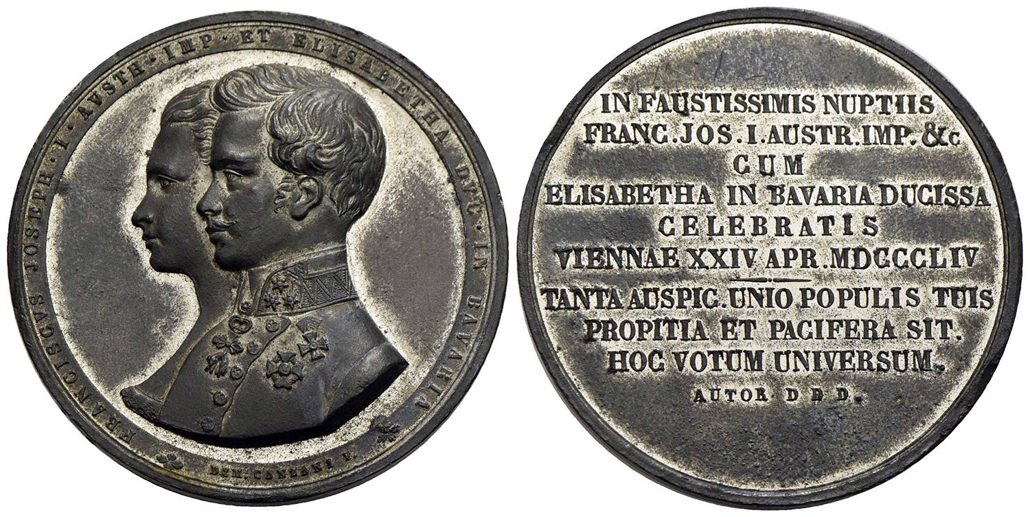 AUSTRIA - Francesco Giuseppe (1848-1916) - Medaglia - 1854 - Nozze - Busti sovrapposti a s. - R/ Scr