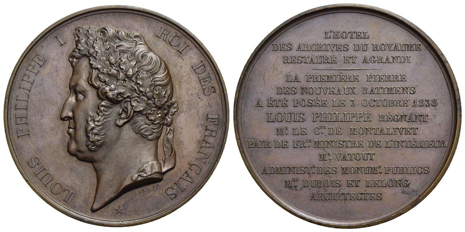 FRANCIA - Luigi Filippo I (1830-1848) - Medaglia - 1838 - Restauro archivio di stato - Testa laureat